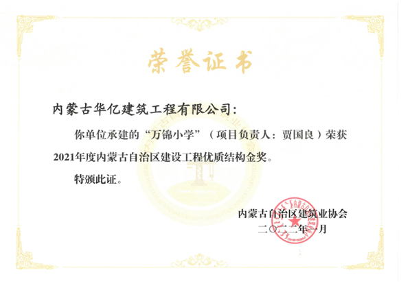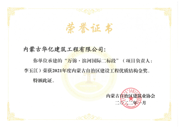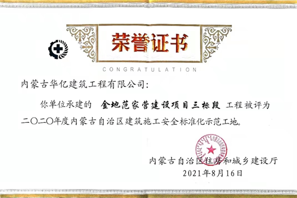 我公司多年来以坚持“严管理,高标准,重品质”的管理方针,树立企业品牌效应,在创新的路上砥砺前行,不断发展壮大,连续多年被内蒙古自治区住房和城乡建设厅评为“自治区建筑施工安全标准化示范工地”,所承建项目荣获“优质结构金奖”、“优质结构银奖”、“草原杯”“青城杯”“绿色施工工程”等多项荣誉。