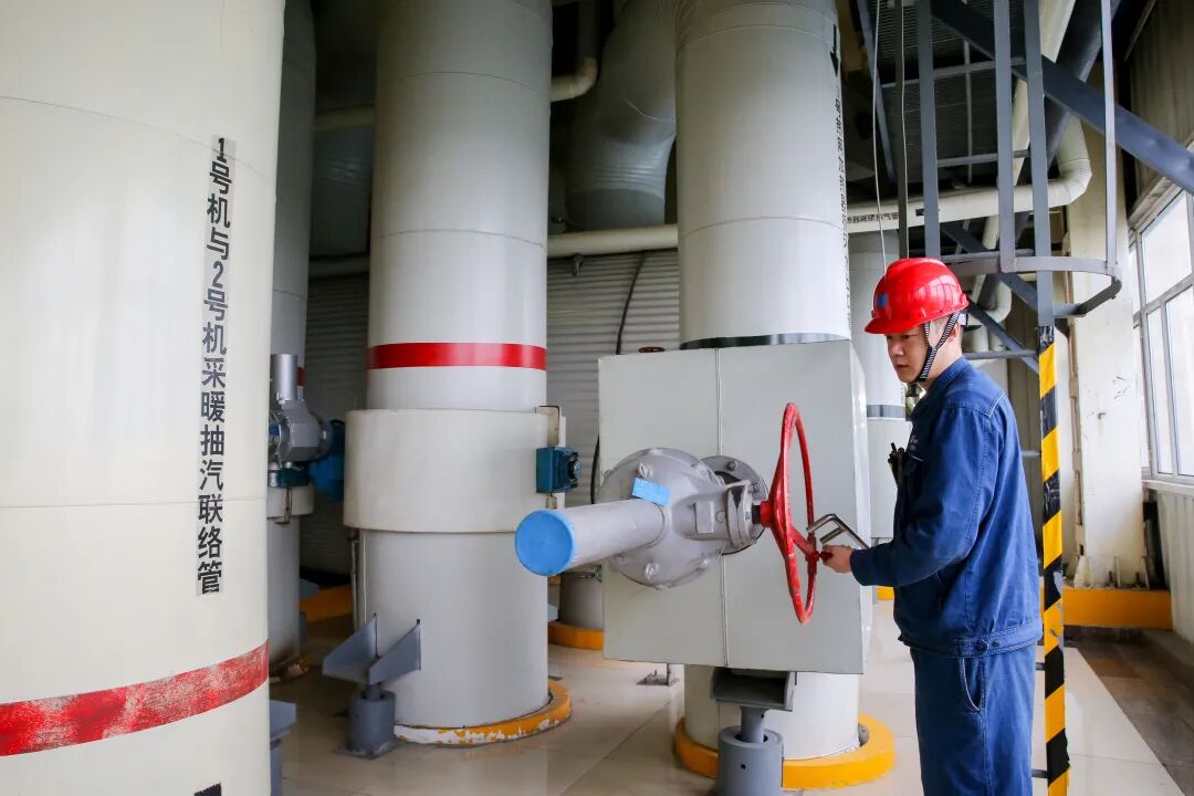 华能北方公司金桥热电厂的工作人员不间断巡检供暖设备