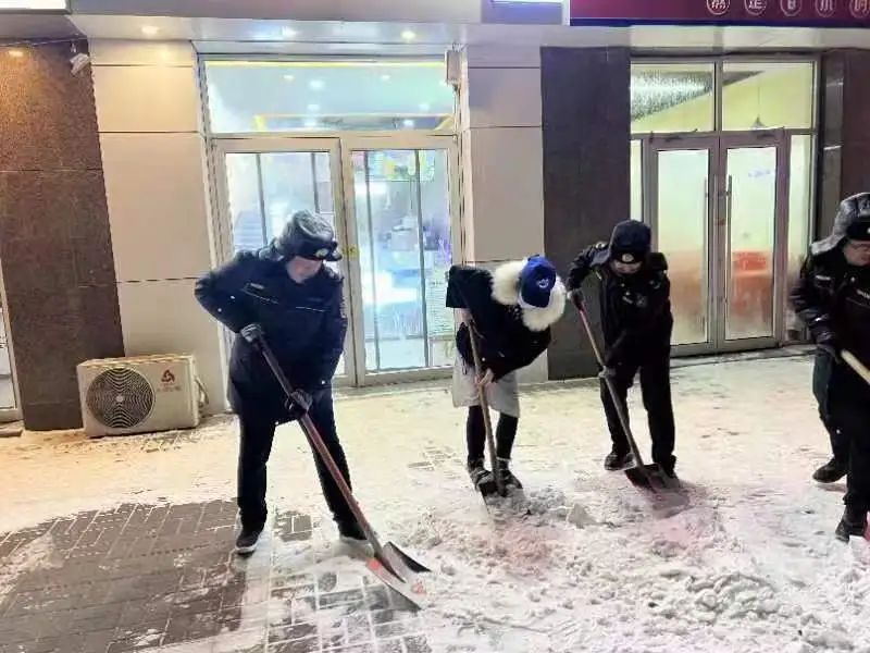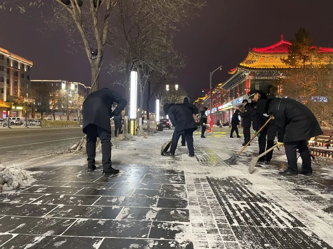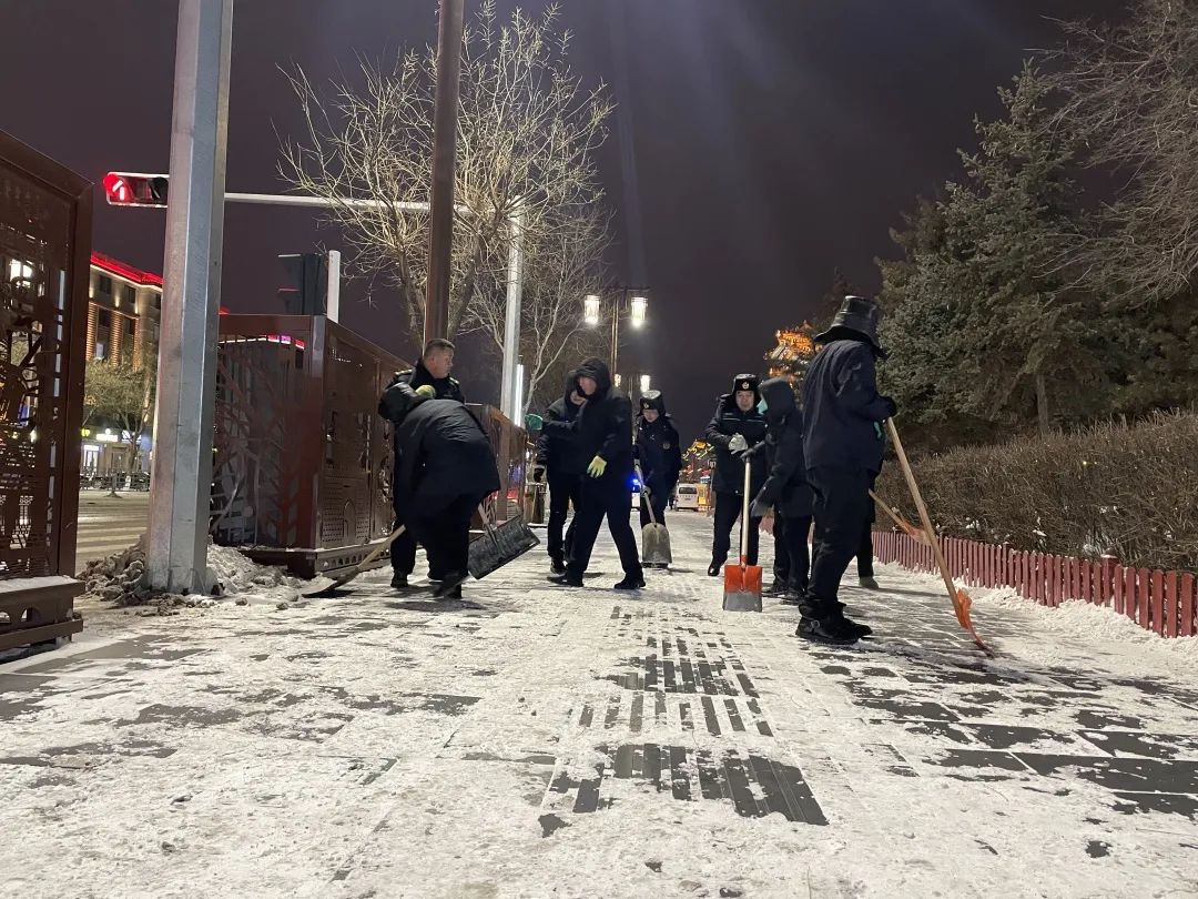 “二管”门前三包责任区域,玉泉区城管局组织执法人员连夜动员未闭店商户,清理“门前三包”责任区内的积雪。并安排执法人员对闭店商户门前责任区域进行清理,最大限度保障行人出行安全。