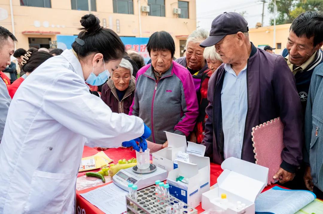 呼和浩特市玉泉区“中国农民丰收节”活动现场,医护志愿者在为村民义诊。丁根厚 摄