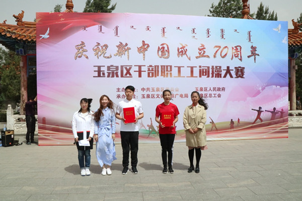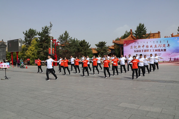 5月15日上午,由玉泉区委员会、玉泉区人民政府主办,玉泉区文体旅游广电局、玉泉区总工会承办的“庆祝新中国成立70周年”──玉泉区干部职工工间操大赛于大召广场举行。