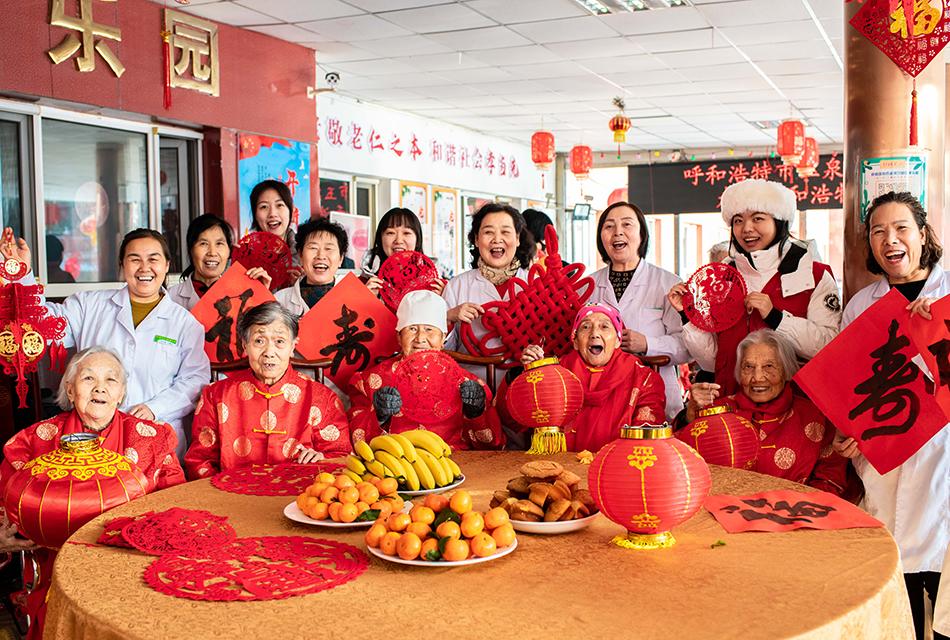 2月6日,内蒙古自治区呼和浩特市玉泉区民政局“福至养老院 情暖夕阳红”迎新春主题活动在玉泉区夕阳红老年康乐园举行。志愿者、院方工作人员与老人们齐聚一堂,一起包饺子、挂灯笼,写福字、剪窗花,在欢声笑语中共迎佳节。(摄影:丁根厚)