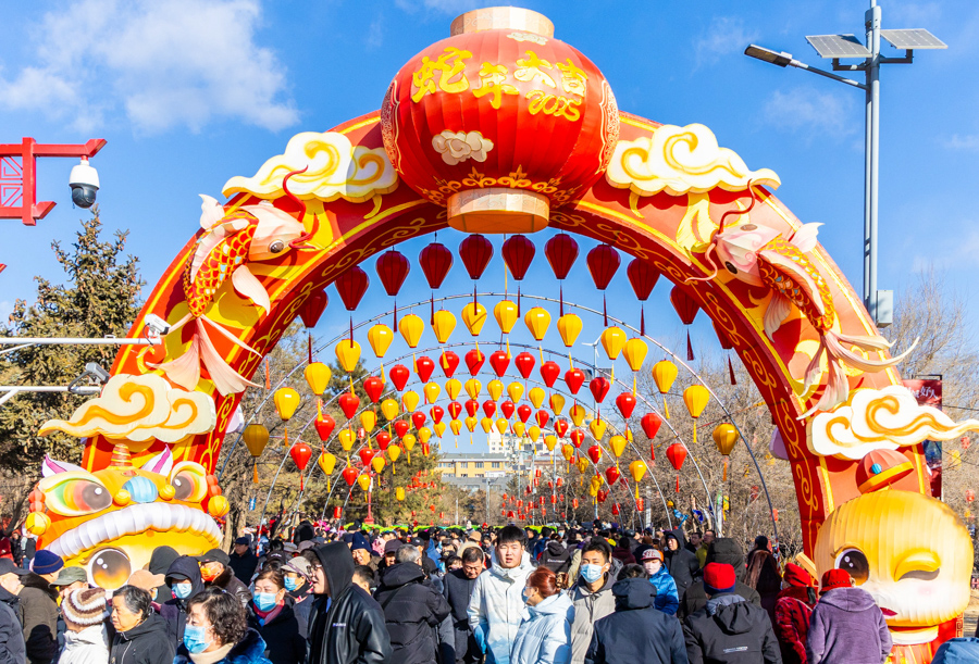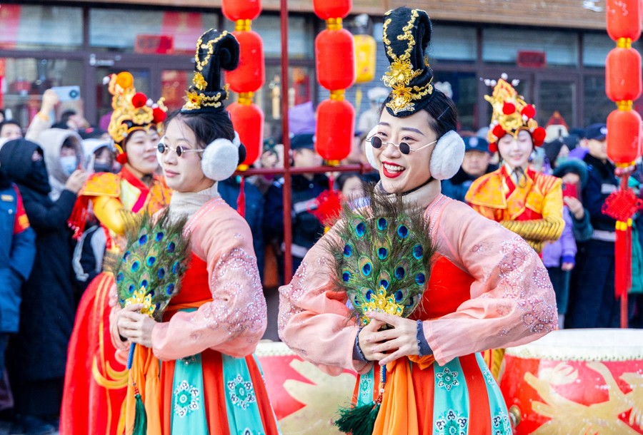 2月12日(农历正月十五),2025年呼和浩特新春文化庙会戏曲非遗“闹元宵”活动在玉泉区塞上老街区块上演。传统非遗社火表演、“新民乐”音乐会、《青城上元开街秀》等活动精彩纷呈,吸引市民和游客前来欢喜闹元宵。(文/图 丁根厚)