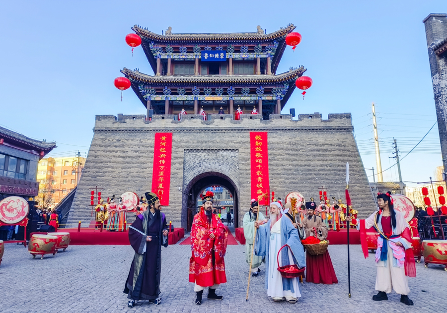 2月12日,呼和浩特新春文化庙会戏曲非遗“闹元宵”活动现场,演员在《青城上元开街秀》上表演。丁根厚 摄