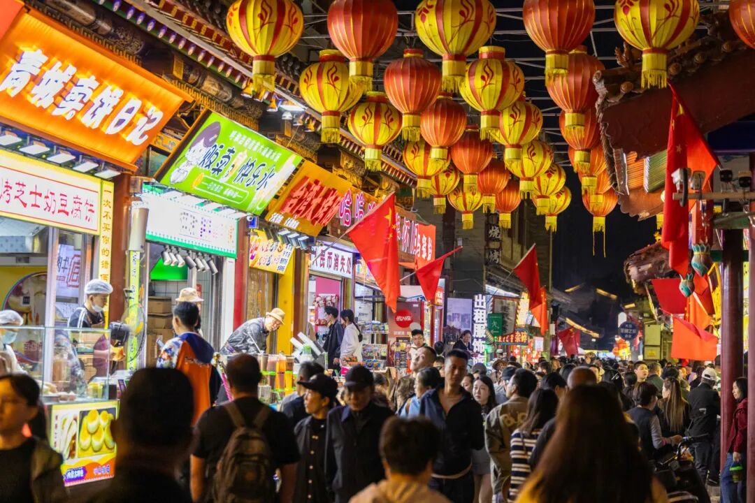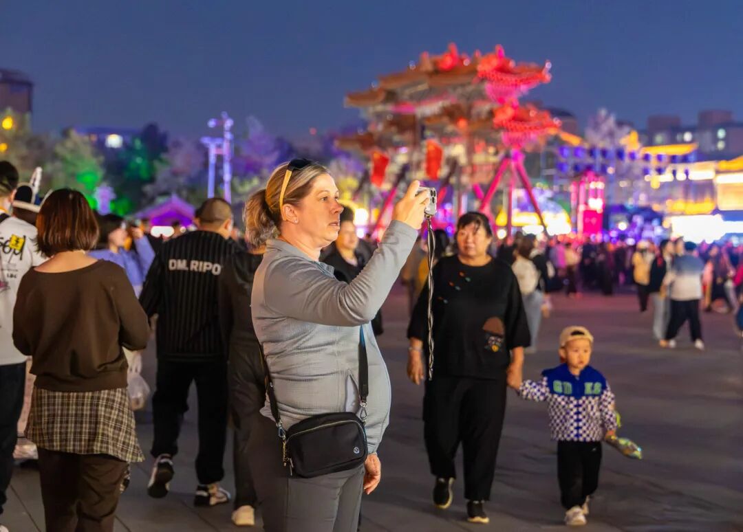 国庆中秋假期,呼和浩特市玉泉区塞上老街旅游休闲街区以集非遗文化、特色商业与观光旅游于一体的多元体验,吸引众多市民和游客前来品美食、赏夜景、看表演,乐享美好假期。(泉媒体记者:丁根厚)