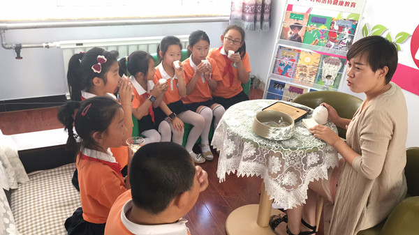 6月19日中午,菩提塔东社区心心阳光站,一群孩子们又早早吃过午饭在安静的听故事了。今天孩子们不仅听社区书记赵建芳讲了《红楼梦》选段,还学习了茶道知识,学着古人“行茶令”,在欢笑声中感受了中国传统文化的魅力。