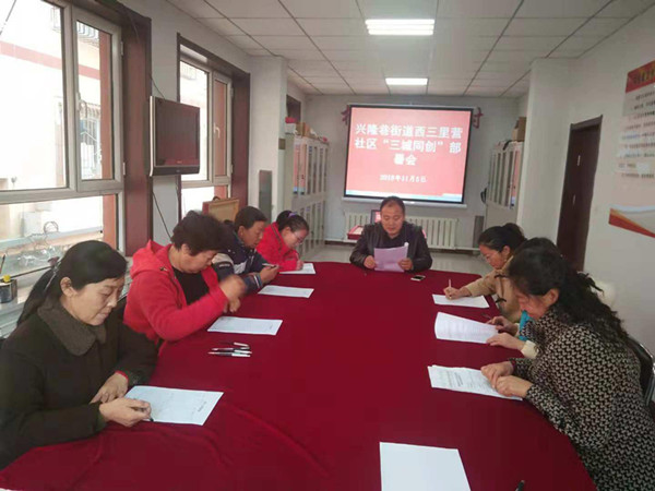 2018年11月5日上午,西三里营社区组织社区全体工作人员召开了三城同创工作部署会,会议由党支部书记张建龙主持。