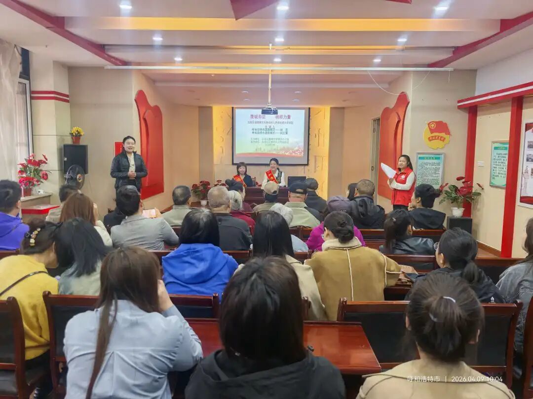 近日,玉泉区精神文明建设办公室、玉泉区讲师团在大召社区新时代文明实践站举办铸牢中华民族共同体意识暨“青城有爱 榜样力量”道德模范和身边好人巡讲活动,社区党员、居民代表参加。