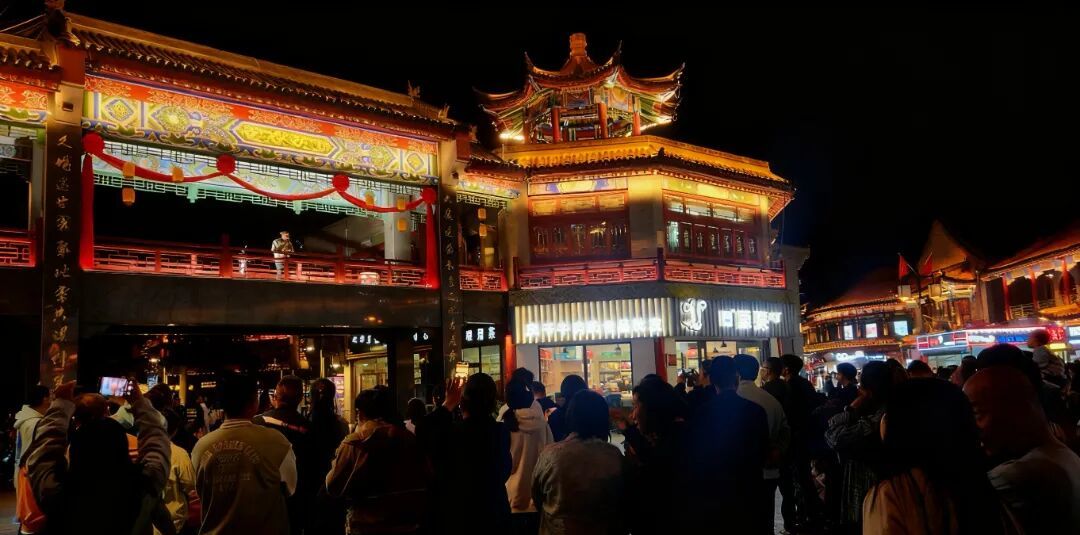 当国庆红邂逅中秋月,塞上老街旅游休闲街区迎来客流高峰。街区内游人如织,国旗与古建筑相映成趣。非遗展演、民俗体验等十余项活动轮番登场,各色店铺前排起长龙。涌动的人潮、升腾的烟火,构成了家国同庆的生动图景。