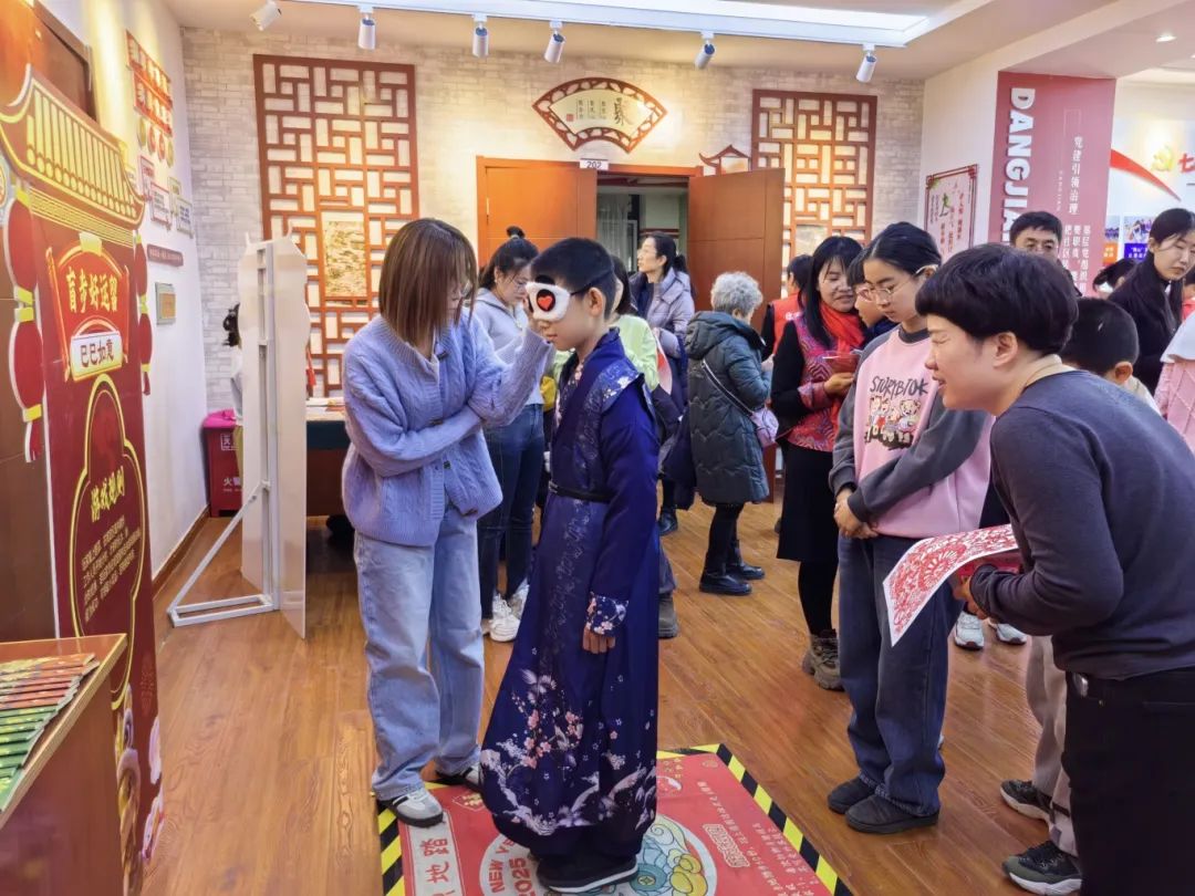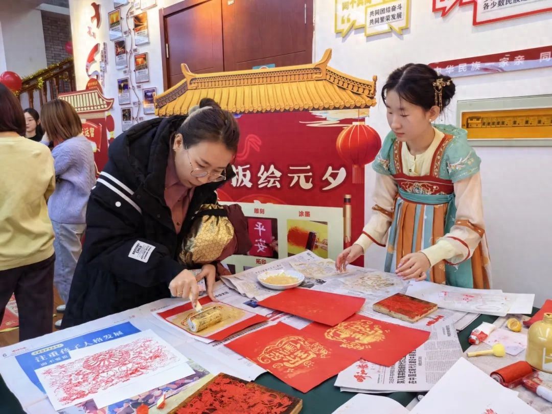 手工制作区同样人气爆棚。巧手包福圆区域:糯米粉、馅料整齐摆放,参与者围坐一团,揉面、包馅、搓圆,手法娴熟,一个个圆润可爱的元宵不一会就在手中诞生,承载着团圆美满的寓意;彩纸绘灯影区域:小朋友们在家长陪伴下,认真地剪裁、粘贴,将普通材料变成一盏盏独具匠心的灯笼,不仅锻炼了动手能力,还增进了亲子间的感情,传承了民俗技艺;刻版绘元夕区域:志愿者现场指导,大家亲手操作,感受传统技艺的独特魅力,将古老的文化印记留存。