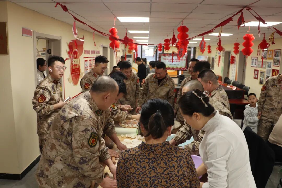 活动现场暖意融融,包饺子、学剪纸、拓福写春联等环节依次展开,内容丰富、年味十足。在包饺子区域,军民代表与社区工作人员围坐协作,揉面、擀皮、包饺子,边劳作边拉家常,欢声笑语中,一个个饱满的饺子承载起年味与情谊,拉近了军民、邻里间的距离。