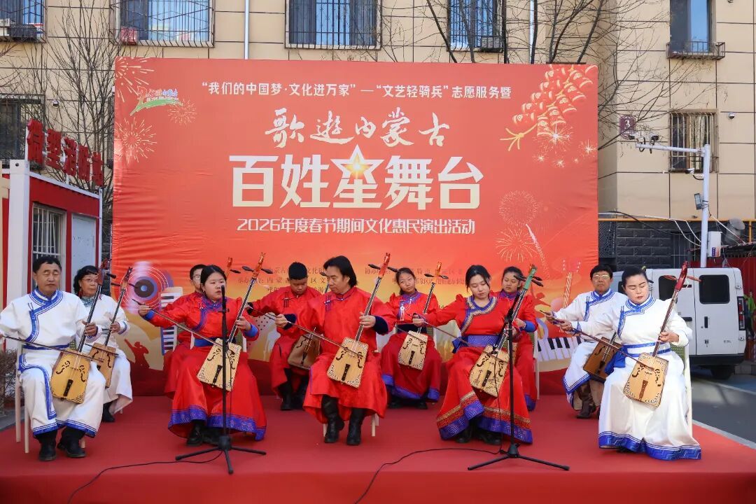 2月13日,玉泉区清泉街社区洋溢着欢声笑语,“我们的中国梦·文化进万家”——“文艺轻骑兵”志愿服务暨“歌游内蒙古·百姓星舞台”2026年度春节期间文化惠民演出活动在这里火热上演。来自内蒙古自治区文化馆、呼和浩特市玉泉区的文化志愿者与社区群众欢聚一堂,在浓郁年味中共迎新春。