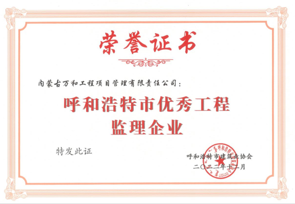 内蒙古万和工程建设监理有限责任公司于2000年6月成立在内蒙古首府呼和浩特市, 2010年3月正式更名为“内蒙古万和工程项目管理有限责任公司”,是原国家建设部批准的三甲级企业(房屋建筑工程监理甲级、市政公用工程监理甲级、工程造价咨询甲级)。公司于2009年经内蒙古住房和城乡建设厅批准取得了桩基检测实验室资质,于2013年经内蒙古自治区人民防空办公室批准取得了人民防空资质(可承担内蒙古自治区抗力等级5级以下人民防空监理业务),2017年取得了招标代理资质,2019年取得了矿山与机电安装工程监理乙级资质,2020年取得了水利水电、公路工程监理乙级资质,2022年水利水电、公路工程监理乙级资质升级为甲级资质。公司是“三标一体”管理体系认证和商标注册企业,目前主要从事房屋建筑、市政公用工程监理、矿山与机电安装工程监理、水利水电与公路工程监理、工程造价咨询、全过程工程咨询与项目管理、招标代理、政府采购及地基基础工程检测等业务。公司目前为中国建设监理协会理事单位、内蒙古自治区工程建设协会副会长单位、呼和浩特市建筑业协会常务副会长单位。