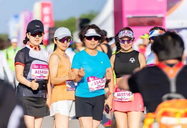 2024年6月30日,参赛选手在呼和浩特女子半程马拉松比赛前留影。