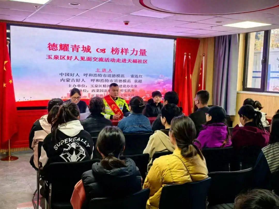 为大力培育和践行社会主义核心价值观,充分发挥道德模范的榜样作用,广泛宣传我市道德模范的感人事迹和崇高精神,在全社会形成崇尚道德模范、热爱道德模范、学习道德模范、争当道德模范的浓厚氛围,日前,玉泉区好人见面交流活动走进西菜园街道天福社区。