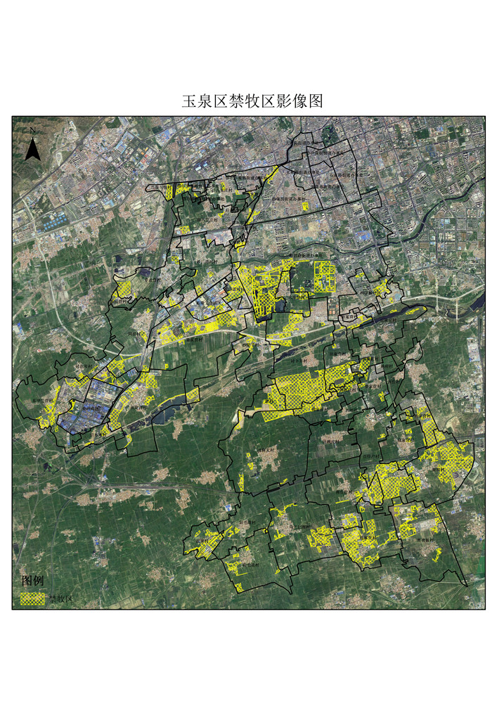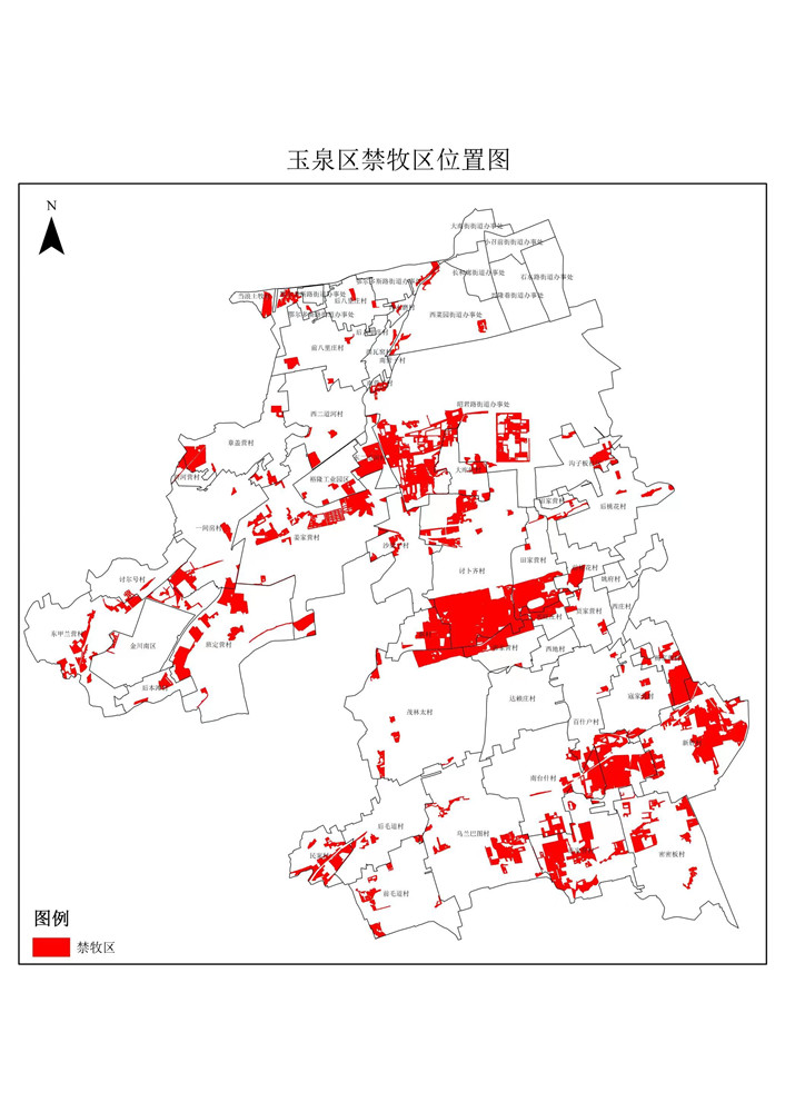依据《呼和浩特市禁牧休牧条例》并结合本地实际,禁牧范围为玉泉区行政区全域。以街道、乡镇、村委为单位,主要包括:行政区域范围内涵盖的小黑河镇、西菜园街道办事处、鄂尔多斯路街道办事处、昭君路街道办事处等的乔灌木林地、草地及湿地边缘等重点区域和城区,中、幼林内严禁放牧。五年后调整更新。