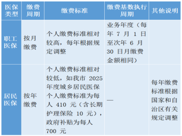 以我市2024年度职工医疗保险(2024年7月至2025年6月)缴费标准为例,见下图: