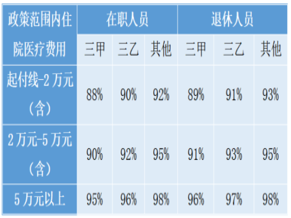 职工医保的住院报销比例:
