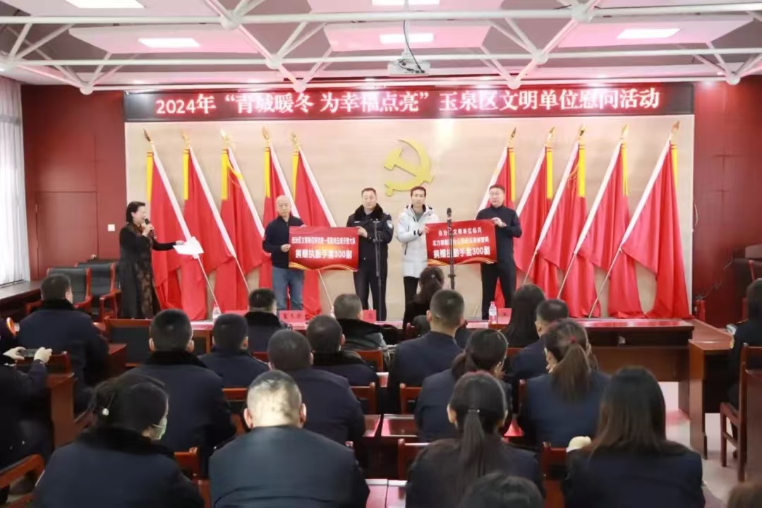 曲艺演出期间,驻区文明单位内蒙古北方新能源分公司及呼和浩特市第一医院向玉泉区交管大队和城管综合执法局一线工作人员捐赠了冬季防寒手套。对交警和城管队员们的辛勤付出表示由衷地感谢,叮嘱他们在执勤执法的同时,注意防寒保暖。大家纷纷表示,一定会坚守岗位、履职尽责,全力以赴为群众安全畅通出行和提升城市品质贡献力量。