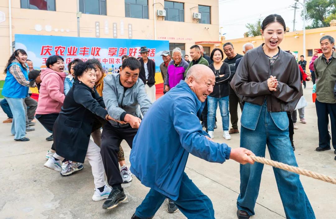 呼和浩特市玉泉区“中国农民丰收节”活动现场,村民在进行拔河比赛。丁根厚