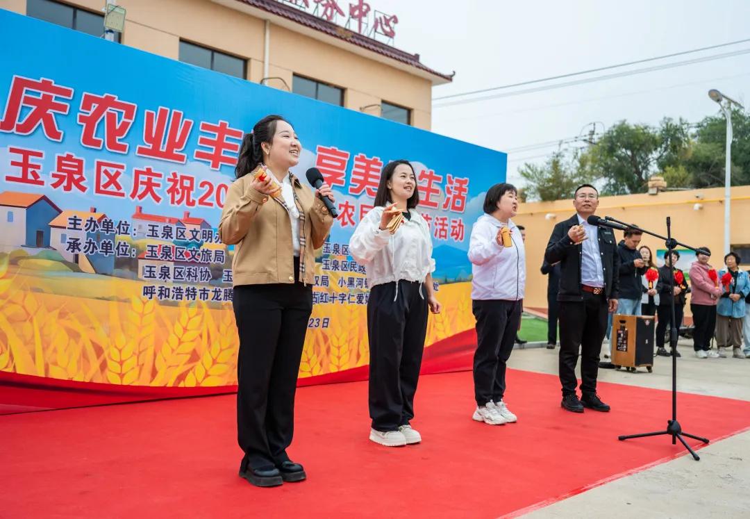 近日,“庆农业丰收 享美好生活”——呼和浩特市玉泉区2025年“中国农民丰收节”活动在小黑河镇南台什村启幕。活动现场推出本土名优特产展销、乌兰牧骑演出、爱心义诊、非遗体验及农事趣味竞赛等系列活动,并同步开展科技科普、移风易俗与政策宣传,展现和美乡村新活力。(文/图 丁根厚)