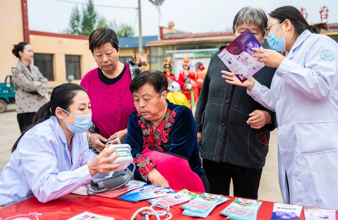 呼和浩特市玉泉区“中国农民丰收节”活动现场,医护志愿者在为村民义诊。丁根厚 摄