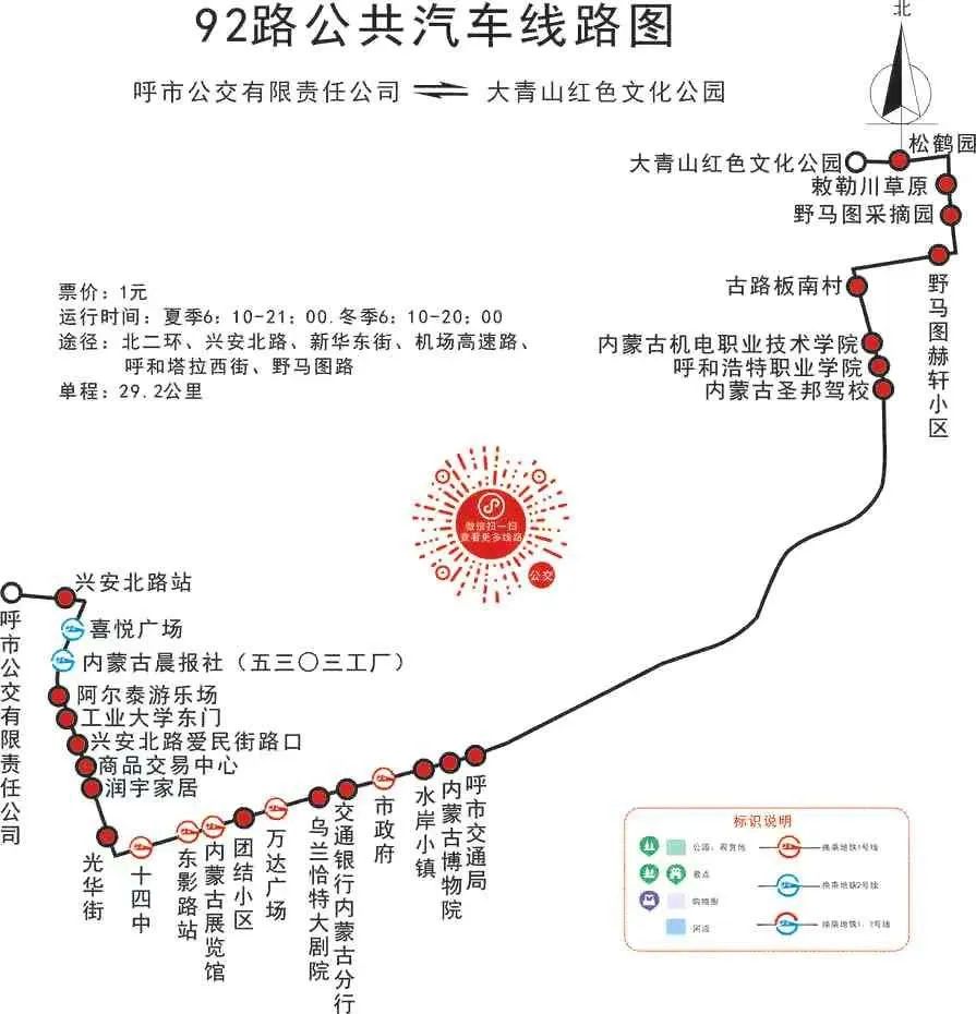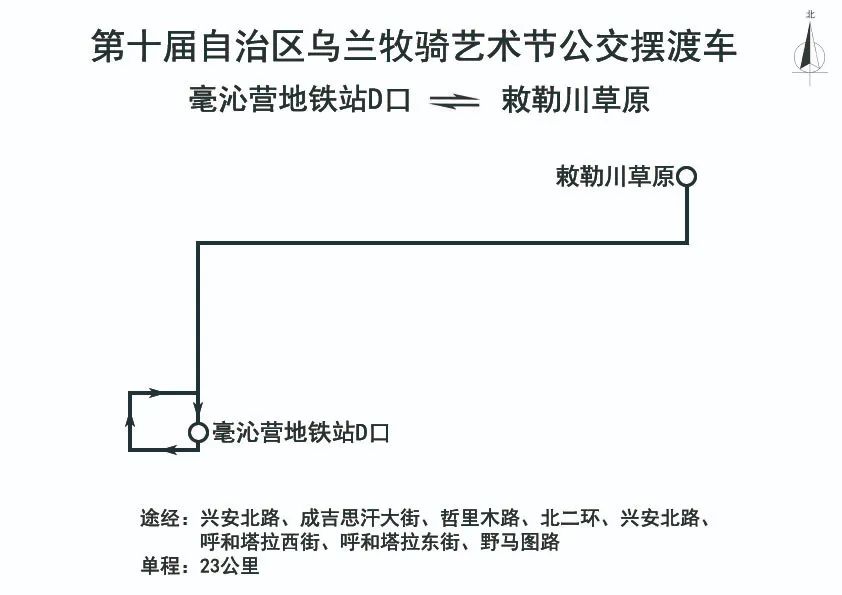 演出当天途经现场的2条公交线路运营时间延长至演出散场后1小时,92路从敕勒川草原站、103路从太阳广场站发末班车。