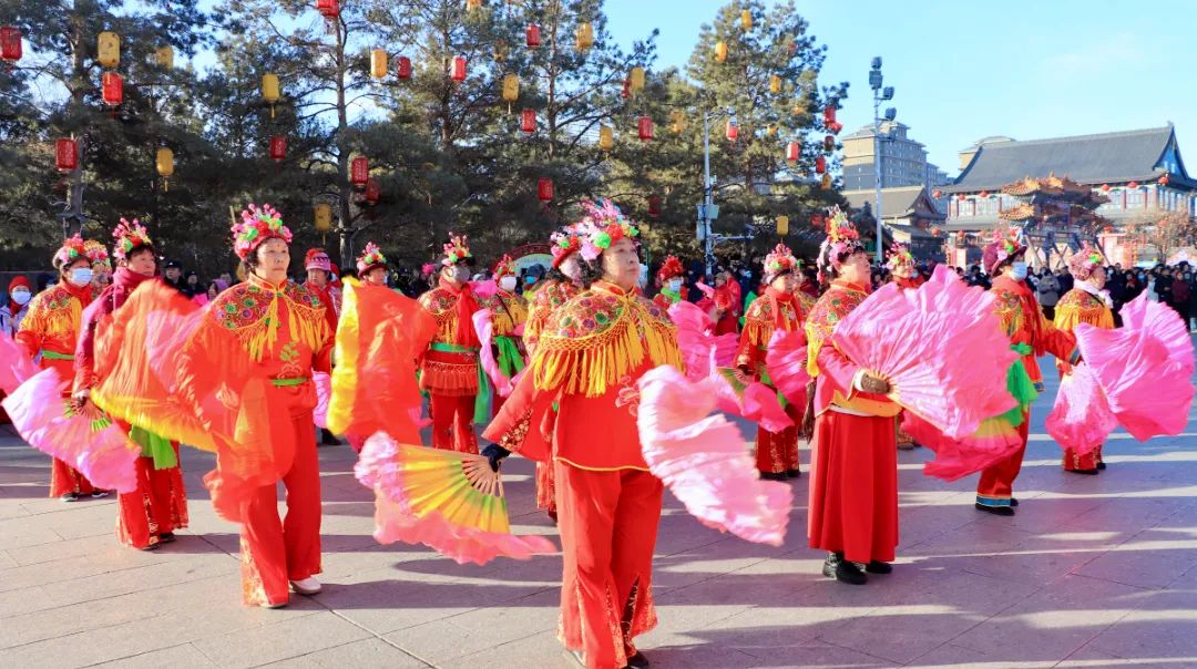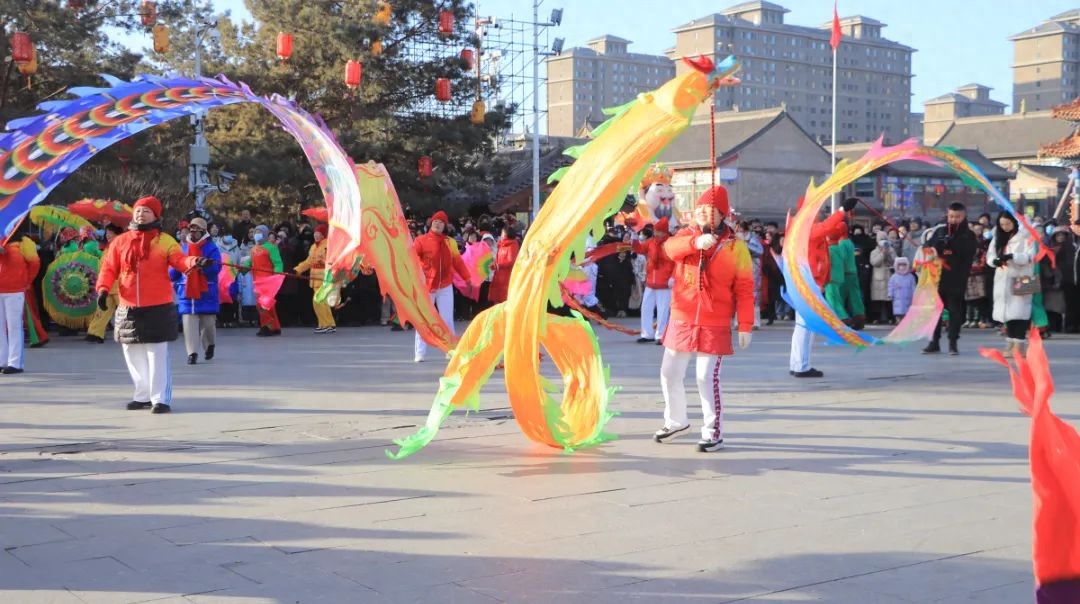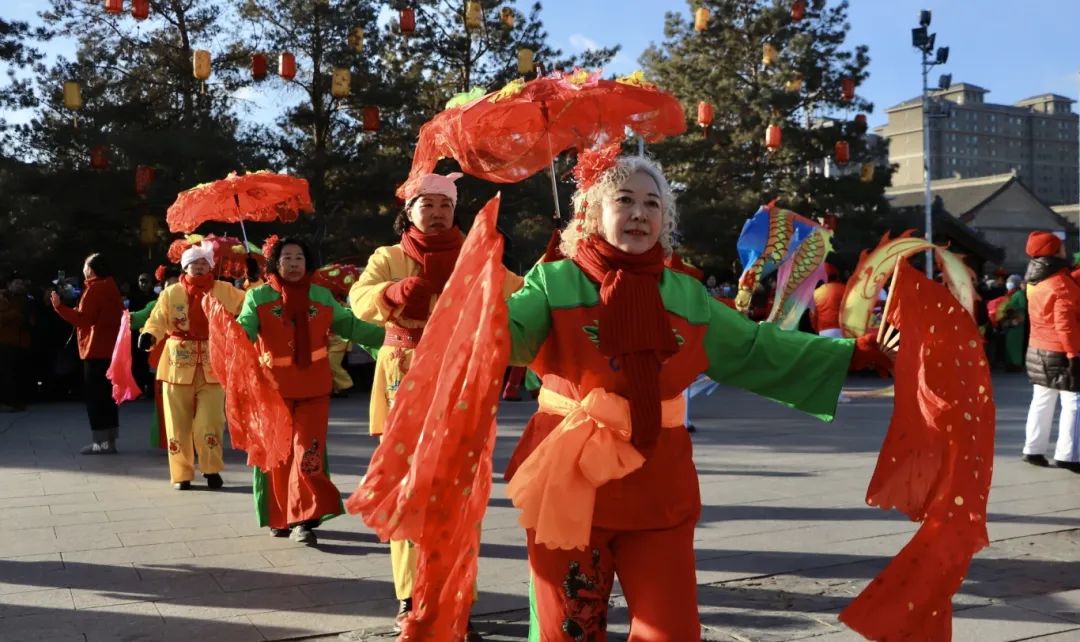 活动现场,人声鼎沸,热闹非凡。扭秧歌、跑旱船等传统非遗社火表演轮番上演,演员们身着华丽服饰,手持彩扇,随着欢快的音乐节奏,迈着轻盈的步伐,传统的非遗社火表演赢得了阵阵喝彩,将欢乐传递给现场的每一位观众。