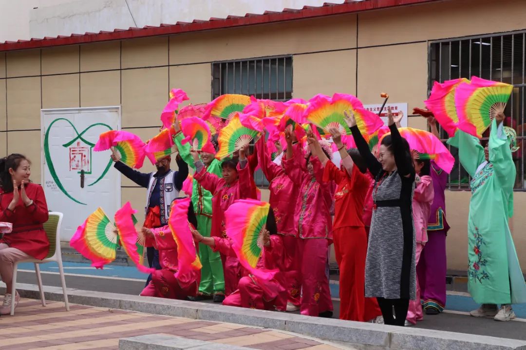 活动当天,社区小广场装扮一新,几张长桌首尾相接排成两排。一大早,居民们便纷纷端来自家的拿手好菜:炸糕、炖牛肉、鱼香肉丝、麻婆豆腐,还有朝鲜族阿姨亲手制作的辣白菜和寿司……在精彩的扭秧歌文艺表演中,一年一度的百家宴活动热闹开场。