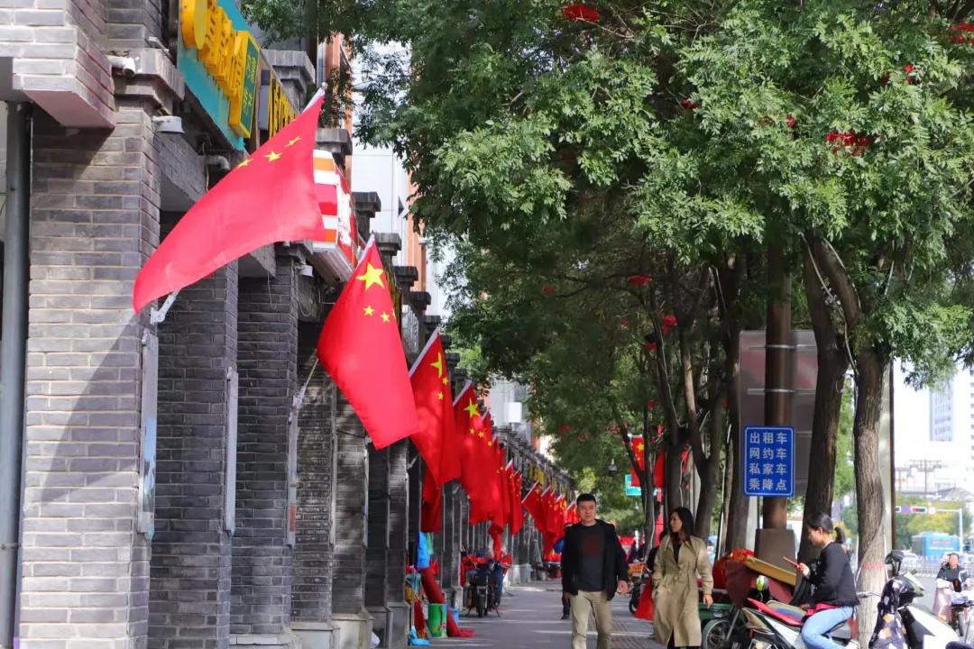 国庆将至,玉泉区主次干道、商业街区处处洋溢着喜庆氛围。沿街商铺门前、路灯杆上,一面面鲜艳的五星红旗迎风招展,红色元素串联起城市脉络,成为街头最亮眼的风景。