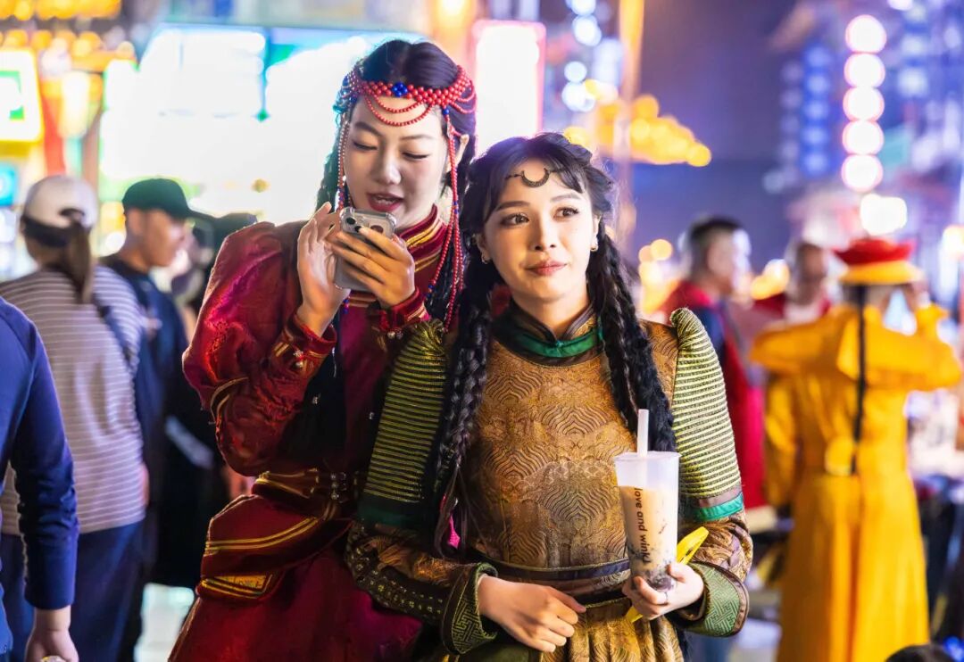 国庆中秋假期,呼和浩特市玉泉区塞上老街旅游休闲街区以集非遗文化、特色商业与观光旅游于一体的多元体验,吸引众多市民和游客前来品美食、赏夜景、看表演,乐享美好假期。(泉媒体记者:丁根厚)