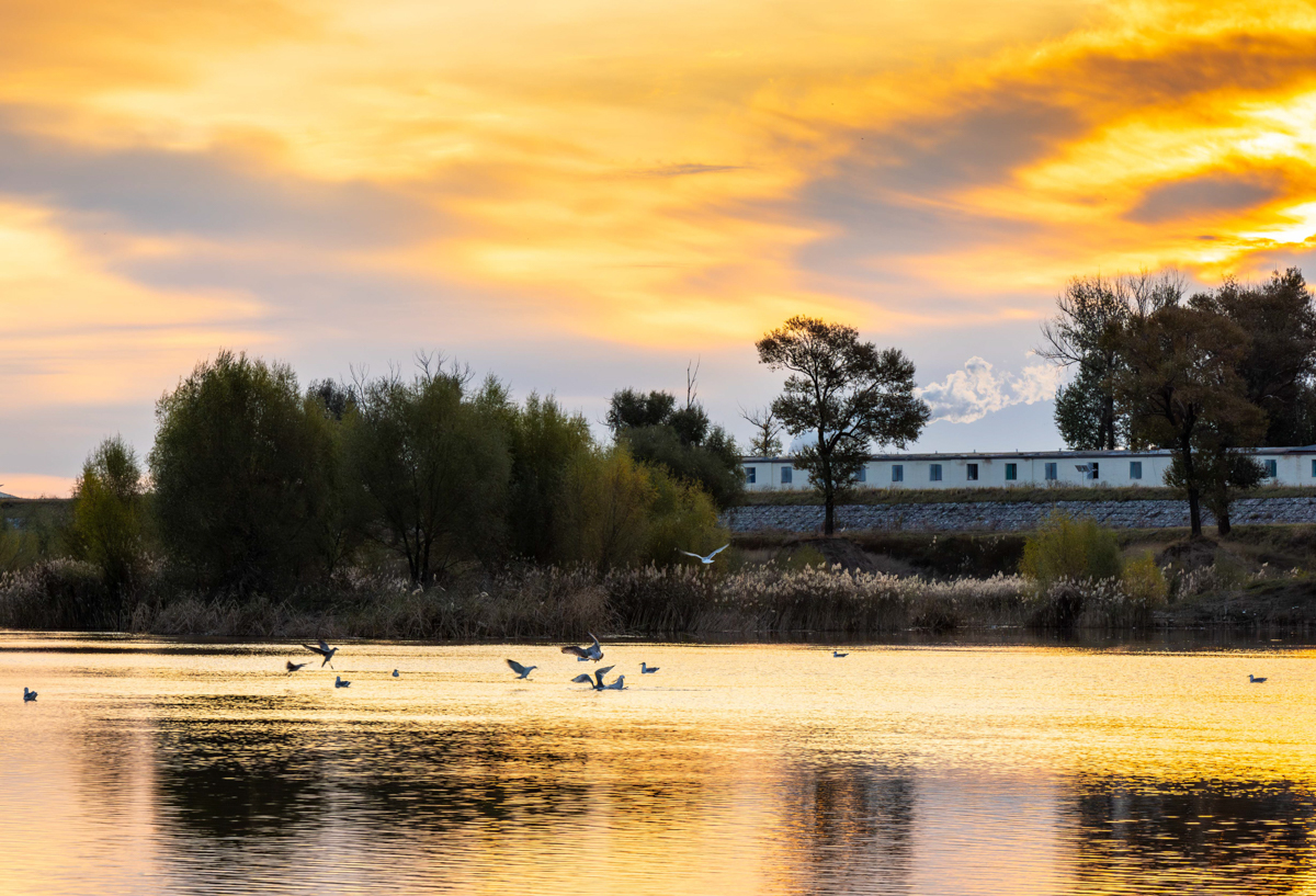 深秋时节的玉泉区大黑河郊野公园,碧水映红霞,飞鸟舞秋风,勾勒出一幅醉人的秋日画卷。(文/图 丁根厚)