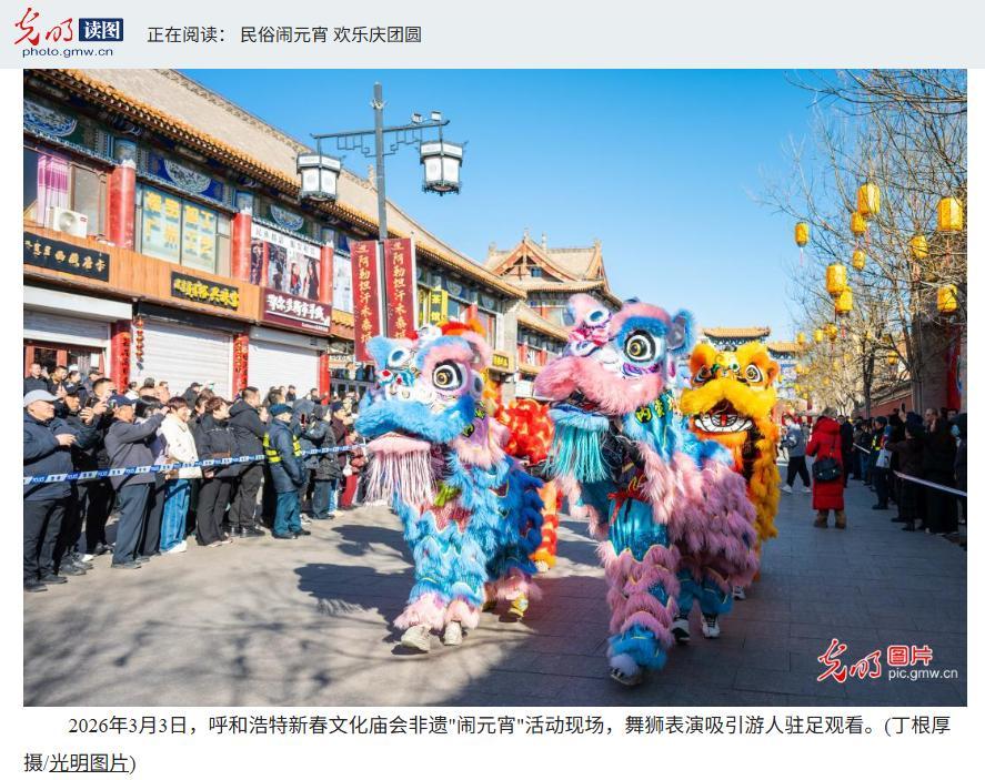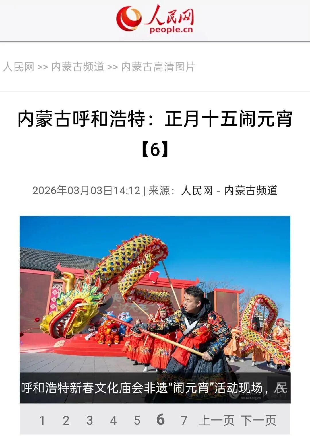 图片新闻《内蒙古呼和浩特:正月十五闹元宵》在人民网内蒙古频道、光明网发表。