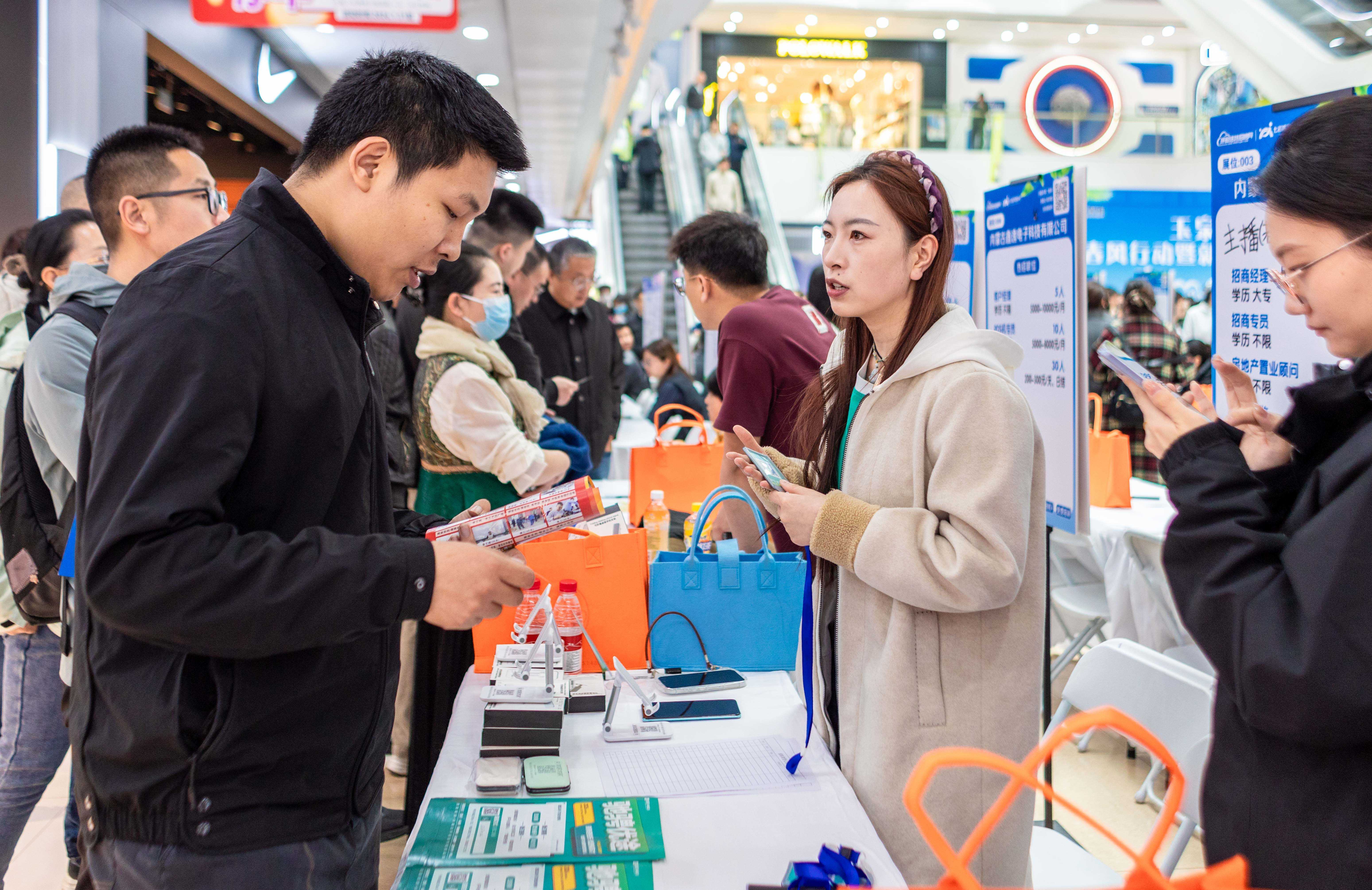 3月28日,内蒙古呼和浩特市玉泉区2026年“春风行动”暨就业援助季专场招聘会在七彩城购物中心举办。活动借助商圈“烟火气”为就业服务“聚人气”,现场121家用人单位提供岗位3337个,涵盖行政后勤、工程技术、新媒体设计、农业生产、电商运营及展厅接待等岗位类别,充分满足高校毕业生、务工人员、就业困难群体等各类求职者的多样化需求,实现岗位与用工的精准对接。(摄影:丁根厚)(文/图 丁根厚)