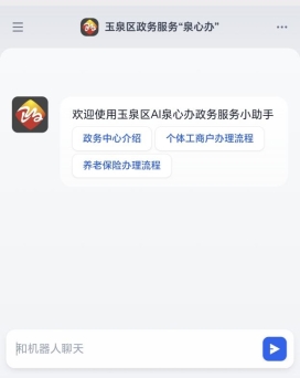 在"玉泉政务服务"公众号平台嵌入智慧政务AI助手"泉心办",依托DeepSeek大模型的语义解析与知识推理能力,通过后台导入知识库并对其进行大量政务领域语料训练,强化AI对于高频政务服务场景的理解,建立覆盖包括企业开办、社保医疗、公安等大厅办理事项的智能应答体系,目前系统可提供530余条政务服务事项的智能问答。以办理食品经营许可证为例,当群众咨询"餐饮店卫生许可流程"时,AI助手不仅能即时推送申报办理流程,还同时推送申请条件、办理材料、注意事项及办理地址等,将传统复杂的咨询流程压缩至90秒内完成。
