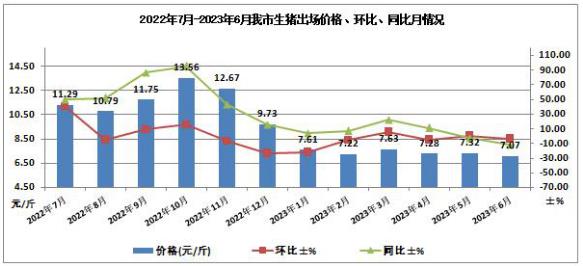 生猪出场价格为7.07元/斤,月环比下降3.42%,同比下降12.11%,猪粮比5.10:1。