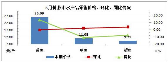 与去年同期相比,带鱼平均零售价格上涨13.68%,草鱼、鲤鱼平均零售价格分别下降10.93%、7.56%。