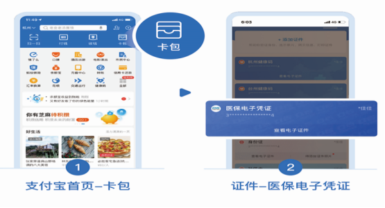医保电子凭证可以通过国家医保服务平台APP、内蒙古医保APP、微信、支付宝、银行、云闪付等由国家医保局认证授权的第三方渠道激活使用。医保电子凭证申请过程十分简单,我们以支付宝为例,仅需三步: