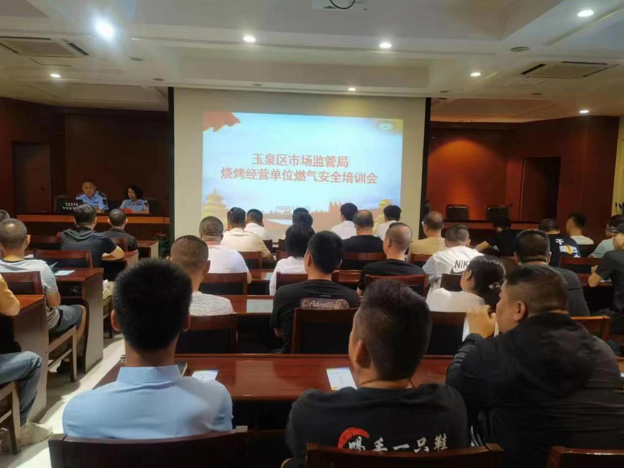 为深刻汲取6月21日宁夏银川烧烤店燃气爆炸事故惨痛教训,切实提高餐饮经营单位从业人员燃气安全知识水平,7月28日上午,玉泉区市场监督管理局组织辖区70余家烧烤餐饮企业进行燃气安全专项培训。此次培训特别邀请青山燃气玉泉区负责人从燃气使用环境、燃气设施、燃烧器具与安防技防措施、安全管理及注意事项等五方面进行讲解。特种设备股股长从液化石油气日常使用基础常识、现场监管要点和注意事项等方面进行详细讲解,现场发放《餐饮燃气安全使用手册》100余份。