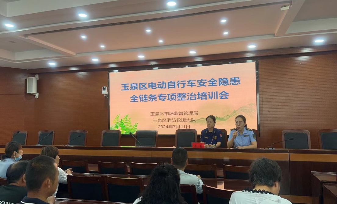 为进一步规范我区电动自行车经营行为,保障人民群众生命财产安全。7月11日,玉泉区市场监督管理局联合玉泉区消防救援大队召开了玉泉区电动自行车安全隐患全链条整治培训会,全区68家电动自行车及配件销售单位相关负责人参加。
