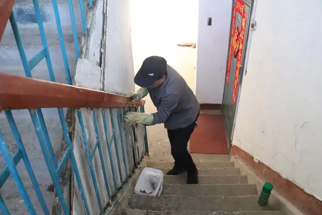物业经理会不定期带领团队进行公共区域保洁服务,工作人员携带专业保洁工具,对楼道窗户、玻璃,楼道阶梯及扶手进行细致清洁,并对小区院内公共区域的卫生和杂物进行清扫和清运。清洁完成后,院中干净整洁,楼道内、楼梯扶手一尘不染,清洁效果立竿见影。对老旧小区业主来说,在最需要的时候为他们提供这样的及时服务无疑是一项暖心之举,今后,街道及社区将会持续进行类似探索,为群众解忧。