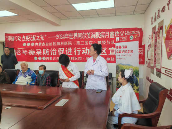 2024年9月21日是第31个“世界阿尔茨海默病日”。今年的宣传主题是:即刻行动:点亮记忆之光。面对老龄化挑战,五塔前街社区联合小召社区卫生服务中心,内蒙古自治区脑科医院专家团队进行义诊,宣传阿尔茨海默病防治、照护知识。