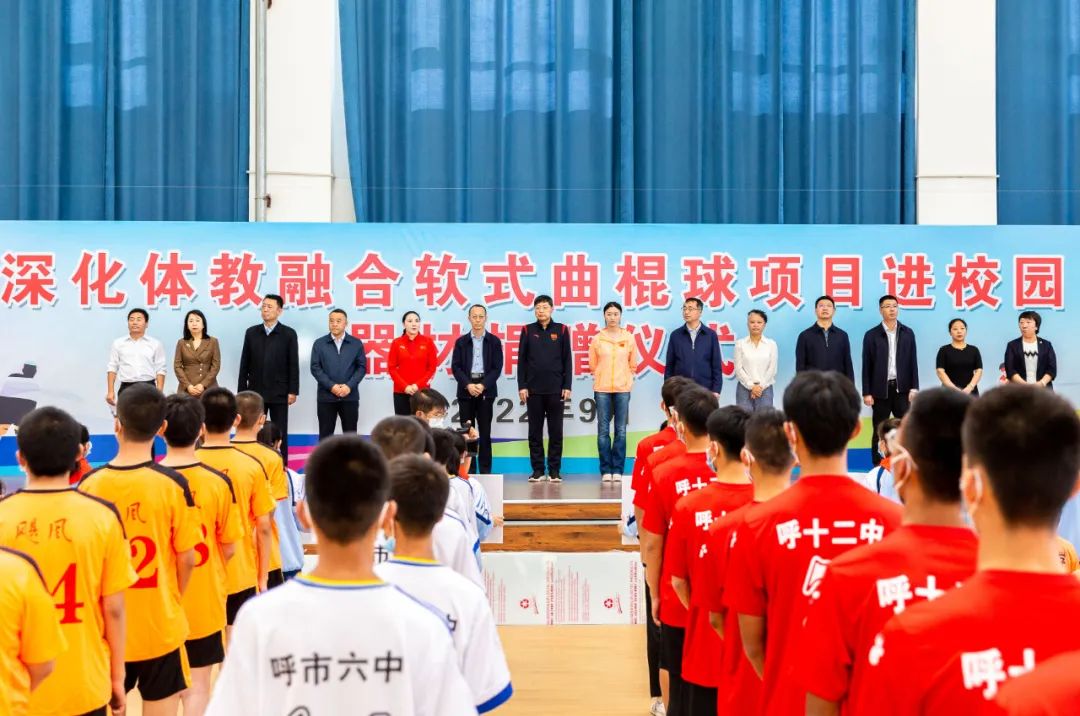 “软式曲棍球项目进校园”器材捐赠仪式在玉泉区银河南街小学隆重举行。仪式由玉泉区教育局局长郝丽丽主持,国家体育总局奥体中心,自治区、呼市以及玉泉区的体育和教育部门,市人大、玉泉区委、政府相关领导,内蒙古曲棍球学会负责人,玉泉区各学校校长和软式曲棍球代表队参加了捐赠仪式。