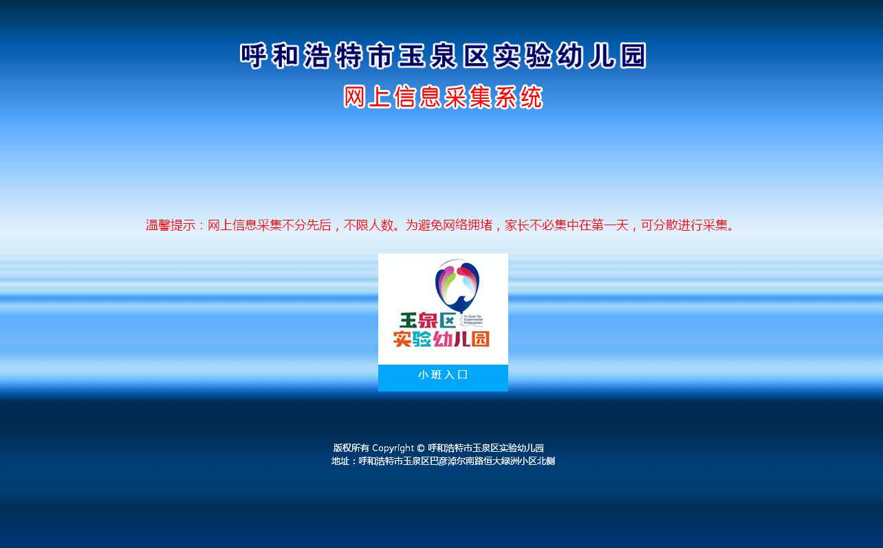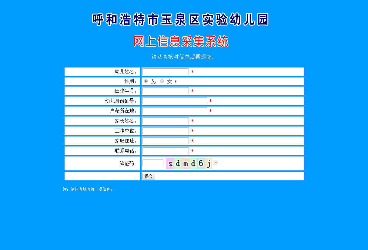 凡符合招生条件的幼儿,可由家长进行网上信息采集。网上信息采集不分先后,不限人数。为避免网络拥堵,家长不必集中在第一天,可分散进行采集。网上信息采集,家长不可同时登录多所玉泉区公办幼儿园的网站进行登记。