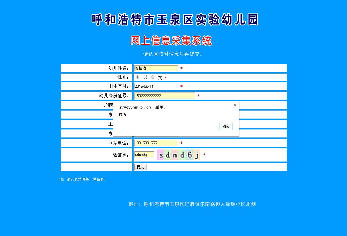 (2)幼儿网上信息采集提交成功的截图或手机拍照后打印的纸质资料。