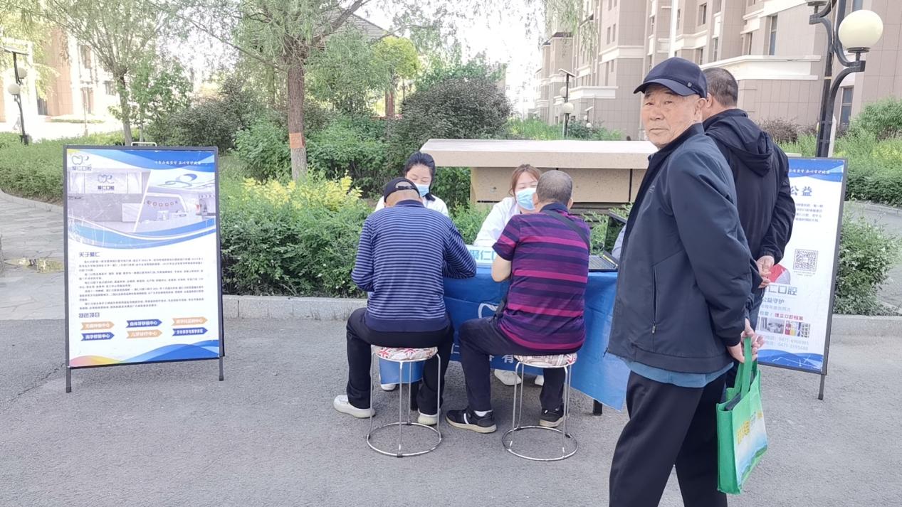 活动现场位于万象天地小区小广场,前来咨询的居民络绎不绝,医生为大家普及了牙科健康知识,帮助居民树立正确就医理念,同时带给大家高质量的医疗服务和口腔健康检查,为居民讲解了口腔护理卡和儿童护齿卡等相关优惠,并教给大爷大娘们如何到呼市、内蒙医保刷卡统筹,包括定点机构,治疗项目均可医保统筹。