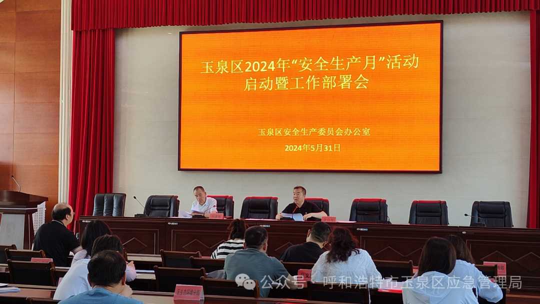 今年6月是全国第23个“安全生产月”,主题是“人人讲安全,个个会应急——畅通生命通道”。5月31日,为贯彻落实好《呼和浩特市安委会办公室关于开展2024年“安全生产月”活动的通知》工作部署要求,玉泉区安委办特组织区安委会成员单位召开全区2024年“安全生产月”活动启动暨工作部署会。
