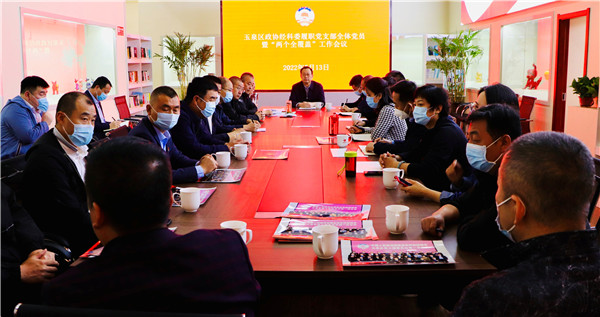 日前,玉泉区召开政协经科委履职党支部全体党员暨“两个全覆盖”工作会议,玉泉区政协主席王青以普通党员身份参加会议,按照党建引领政协工作的具体要求,以抓党建促履职的工作原则引领履职落到实处。